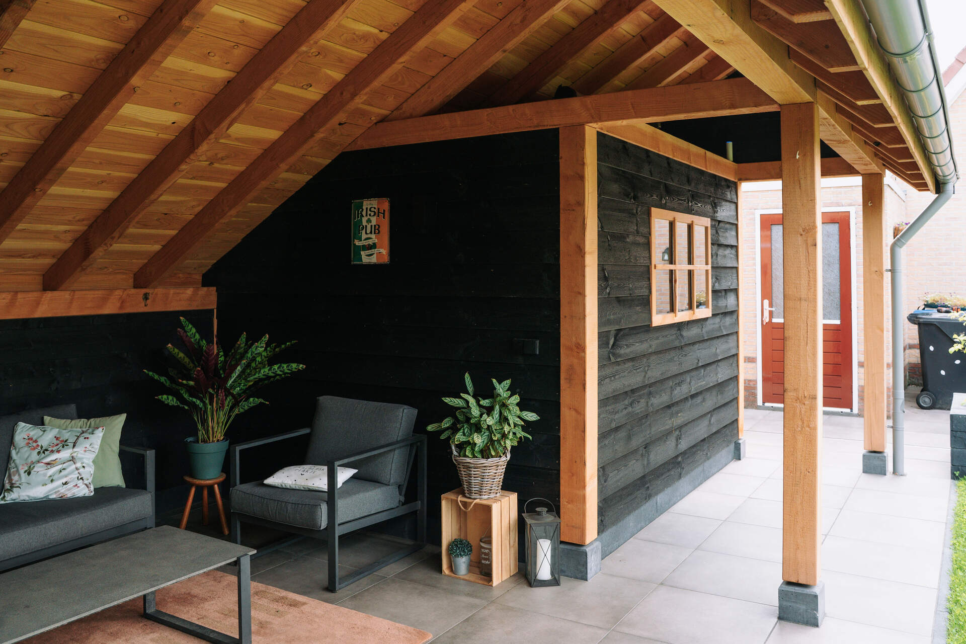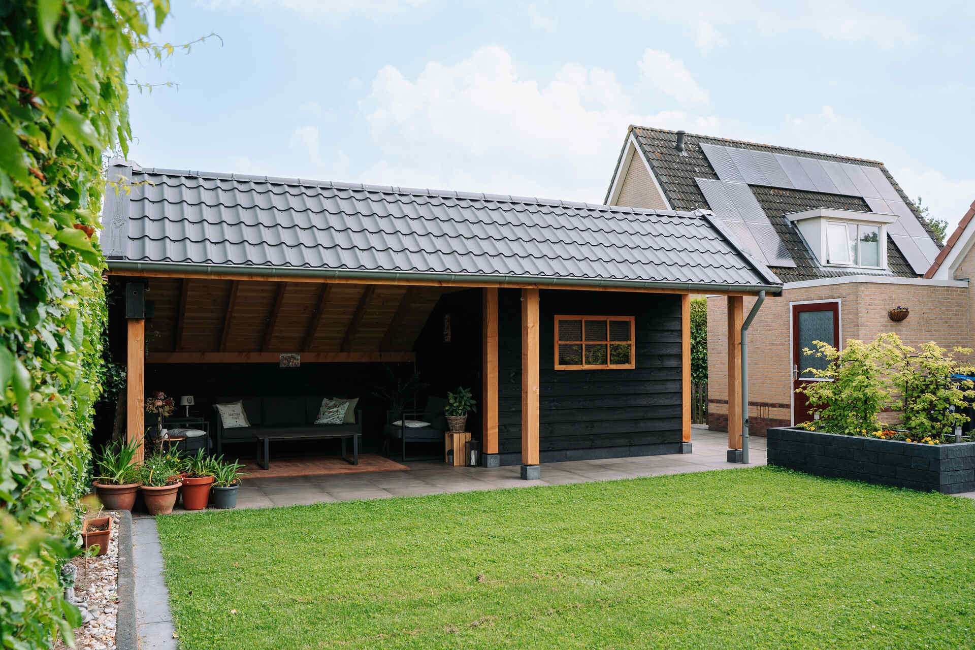 De unieke vorm van een kapschuur biedt tal van voordelen. De hoge ingang aan de voorzijde versterkt het open en luchtige karakter, terwijl het verlengde dak beschutting biedt tegen alle weersomstandigheden. Dit maakt een kapschuur niet alleen praktisch, maar ook een sfeervolle en functionele buitenruimte.